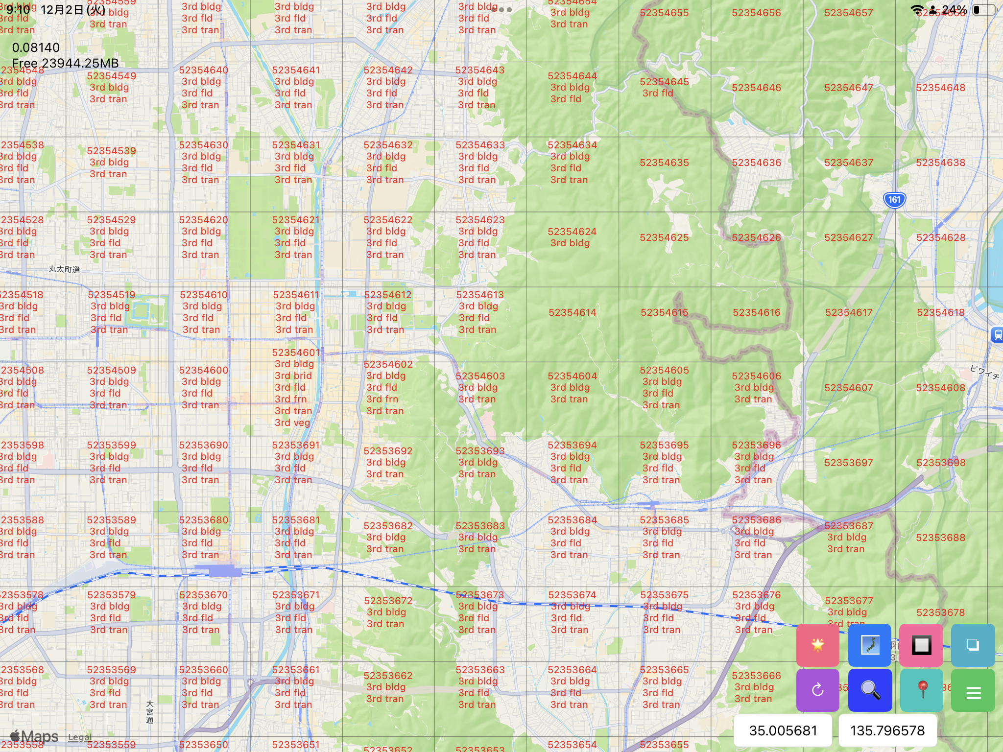 UIDocumentInteractionControllerを実装し、表示画面の中心の3次メッシュコードをファイル名として出力するようにした。(18/Aug/2025)