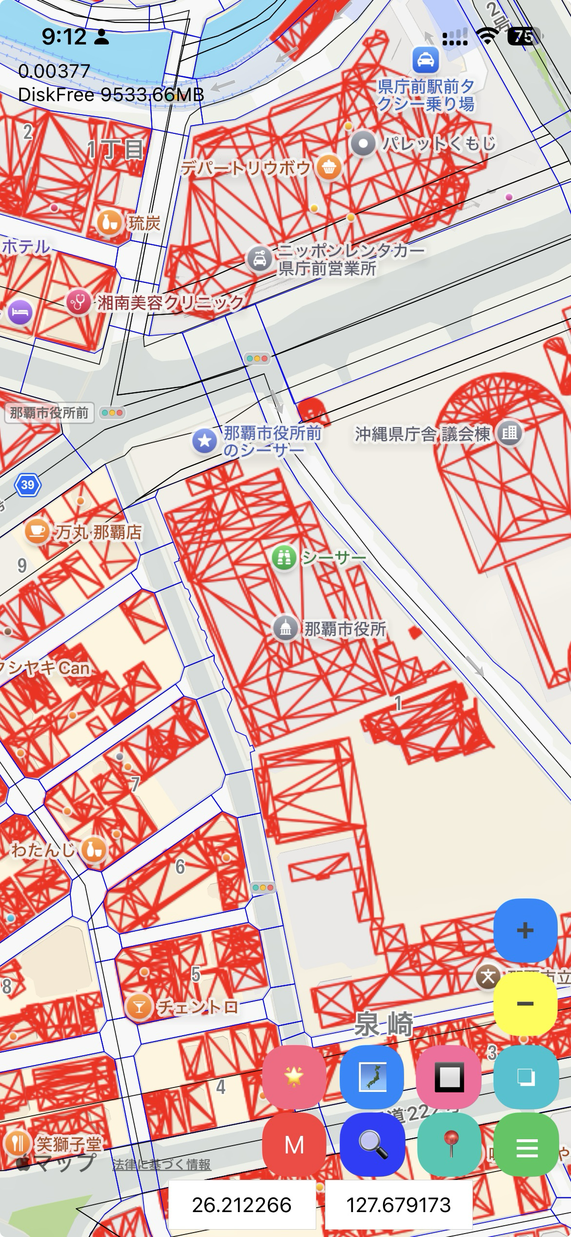 B)他には、ズームアウトした場合、2次メッシュコード、3次メッシュコードのグリッドとメッシュコードをMapViewにオーバーレイ表示したりする機能です。データの存在するフォルダ名を追加表示しました。