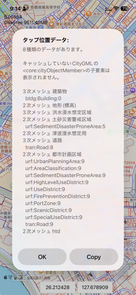 地図上でタップした位置にどのようなデータがあるかを表示する機能を搭載した。