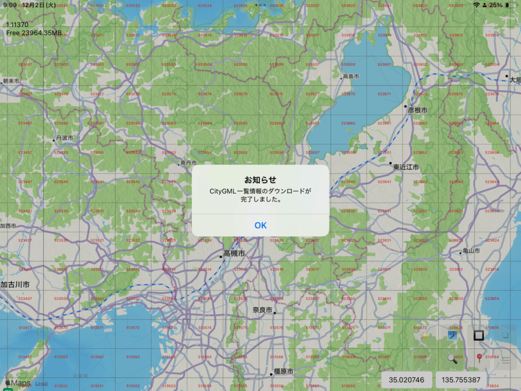 iPlateauの初回起動時にはPLATEAUのCityGMLファイルのインデックス情報が自動的にダウンロードされます。このインデックス情報がないと、CityGMLに辿り着けません。