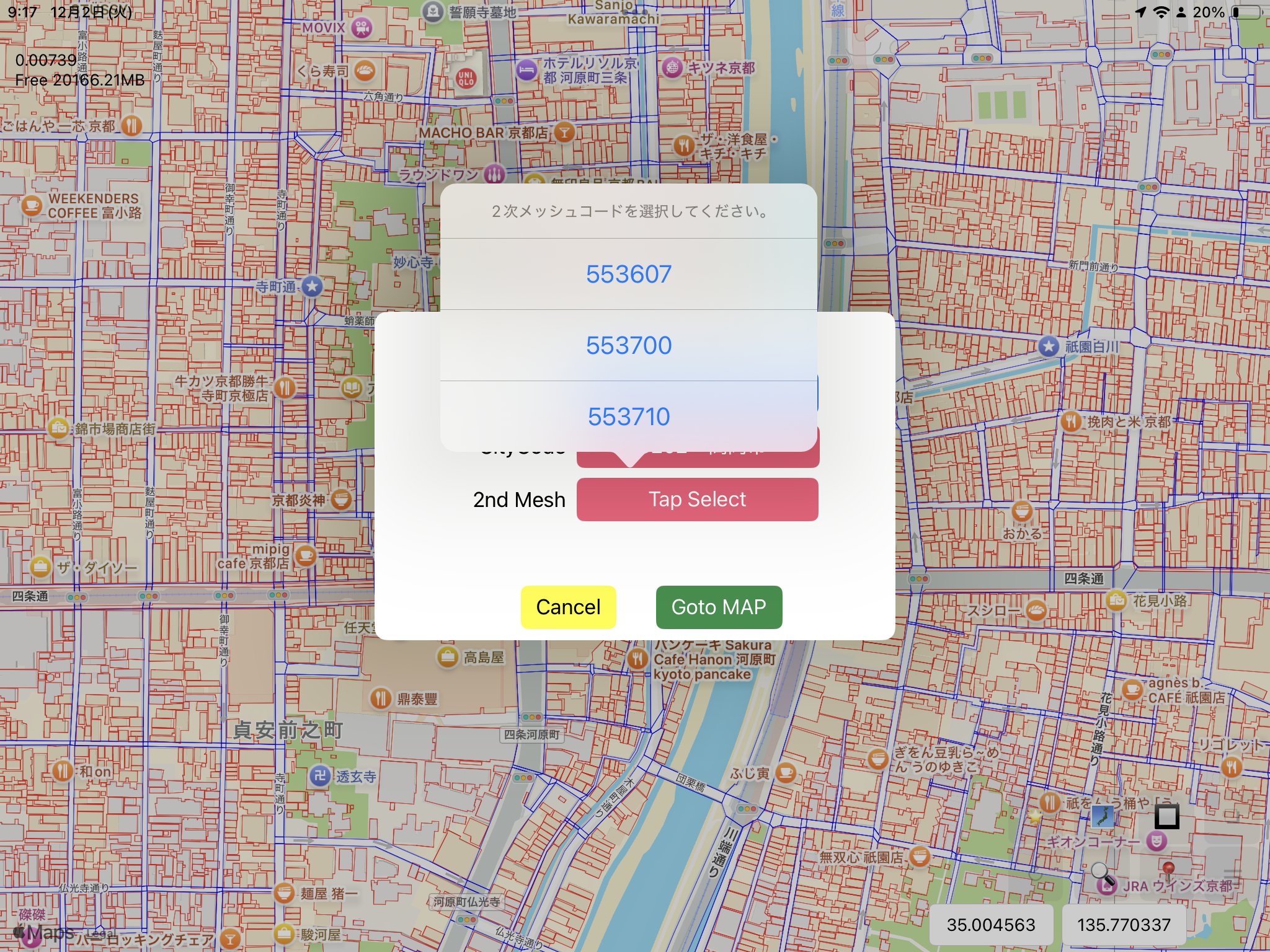 3次メッシュを選択します。そして「Goto Map」ボタンをタップします。